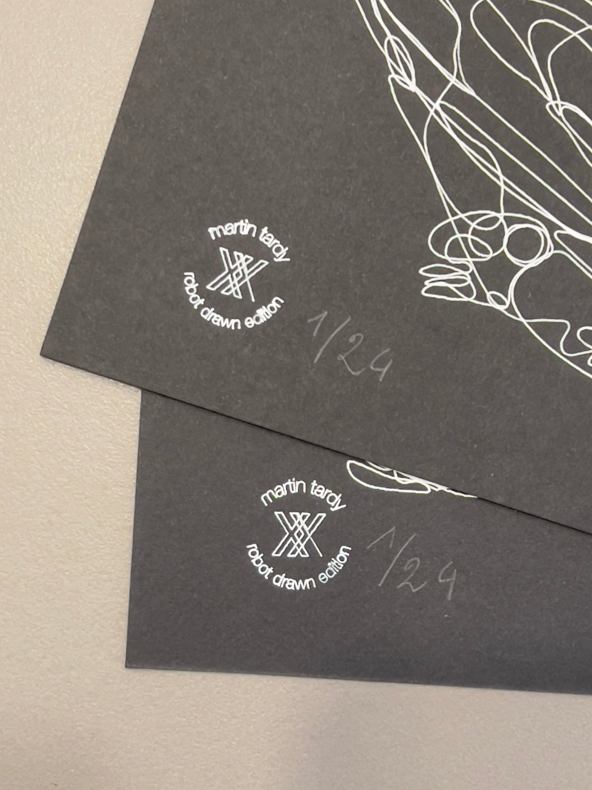 drawn in a single line by a robot on 200g/m high quality paper from Römturm